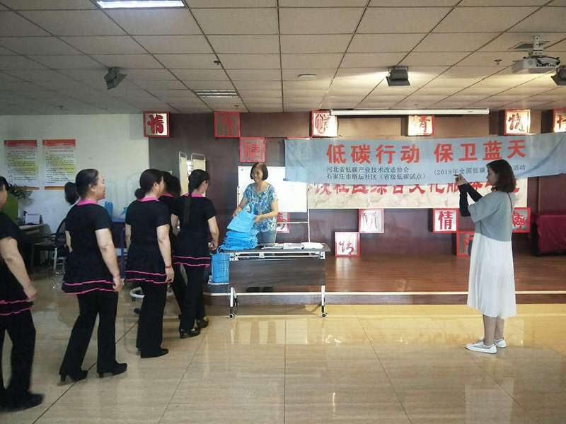 省低碳产业技术改造协会联合石家庄市塔坛社区(省低碳社区试点)向居民宣读“低碳行动,保卫蓝天”倡议书,给社区垃圾箱张贴垃圾分类标志,向居民发放宣传资料。