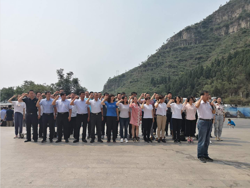 在狼牙山红色教育基地一面巨幅党旗和高大的五勇士塑像前,全体党员高举右手,举行了庄重的宣誓仪式,重温入党誓词,缅怀革命先烈丰功伟绩。这是党员对党的庄严承诺,每一位党员用洪亮并发自内心的声音表达自己对党的忠诚。随后全体党员干部参观了狼牙山五勇士陈列馆,馆内收藏了珍贵的历史图片、资料、抗战文物、战斗场景雕塑等,生动再现了军民抗击日寇、保家卫国的英雄事迹。在红色抗战厅,大家聆听了狼牙山五勇士在抗战期间的英雄故事,为五勇士崇高的爱国主义精神和坚贞不屈的民族气节深深打动,对他们“忠于人民的坚定信念,英勇顽强的钢铁意志,视死如归的英雄气概,甘于奉献的高尚情怀” 的精神表示衷心敬佩。