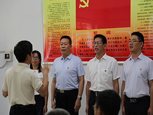 重温入党誓词。面向鲜红的党旗,党员们手握右拳,再一次庄严宣誓,重温入党誓词,把入党的初心铭记在心,把党员的使命扛起在肩。