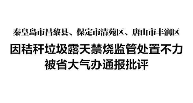 近日,河北省大气办对秦皇岛市昌黎县、保定市清苑区、唐山市丰润区2019—2020年秋冬季以来秸秆垃圾露天焚烧问题巡查管控不力、火点数量持续居高不下、核查处置不及时且未依法依规依纪进行处罚问责等问题进行了通报批评,并要求各地务必深刻吸取教训,全面对照检查,引以为戒,举一反三,立即采取有力有效措施,找准薄弱环节,补齐工作短板,压实各方责任,加强巡查管控,及时处置反馈,依法依规依纪严肃查处问责,确保各项工作抓实抓细抓落地,坚决遏制秸秆垃圾露天焚烧高发频发势头。
