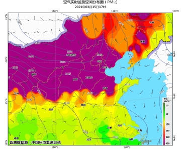 我省3月15日出现大范围沙尘天气部分城市PM10出现连续小时爆表情况