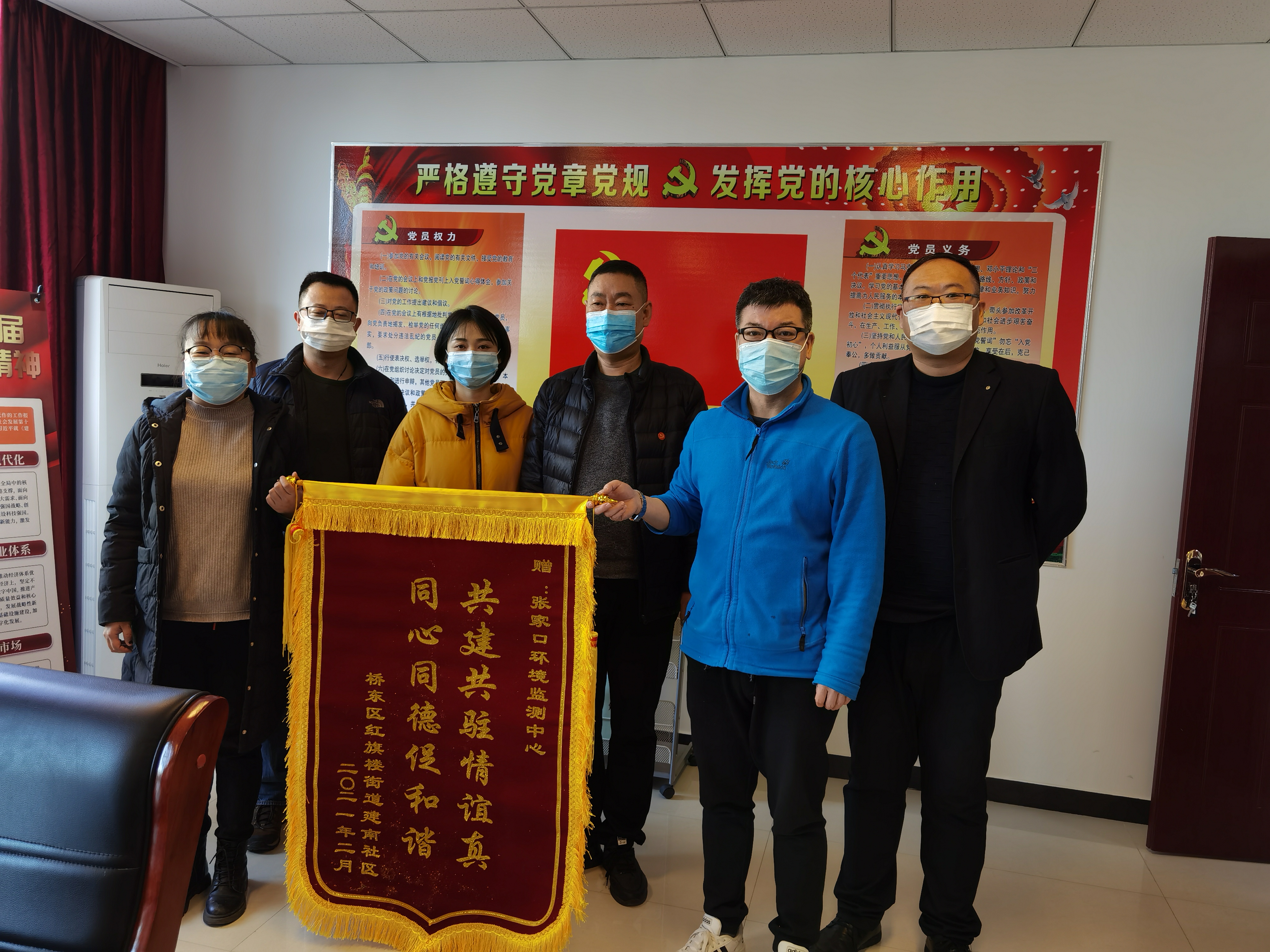 2021年2月,河北省张家口生态环境监测中心迎来了一批上门的客人,建南社区刘翔书记手捧着“共建共驻情谊真,同心同德促和谐”的锦旗交到中心党总支书记手中,向河北省张家口生态环境监测中心党总支一年来对建南社区工作的支持表达了真诚的谢意。同时双方就2021年共驻共建活动开展进行了深入的座谈交流。