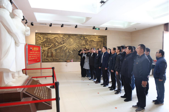 纪念馆内,参加活动的全体党员干部面对党旗庄严宣誓,重温了对党的承诺。随后,在讲解员的引导下,参观了“两个第一(全国第一个农村党支部-台城特支、河北省第一个县委—中共安平县委)”纪念馆,详细了解了安平县台城村第一个党支部和安平县委的诞生过程,回顾缅怀了李大钊、弓仲韬、李锡九等革命先辈在农村开展革命活动的光辉历程和丰功伟绩,使大家受到了一次深刻的革命传统教育洗礼。