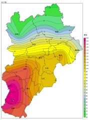 2021年PM2.5年均浓度为38.8微克/立方米,标志着我省PM2.5浓度正式进入“30+”时代,同比下降率达到15.3%,为2013年同比改善率最高的一年。空间分布上,浓度分布“南高北低”,但南北浓度差距由2013年的119微克/立方米下降为2021年的23微克/立方米,在全省浓度整体性下降的同时,中南部城市改善效果更为明显。