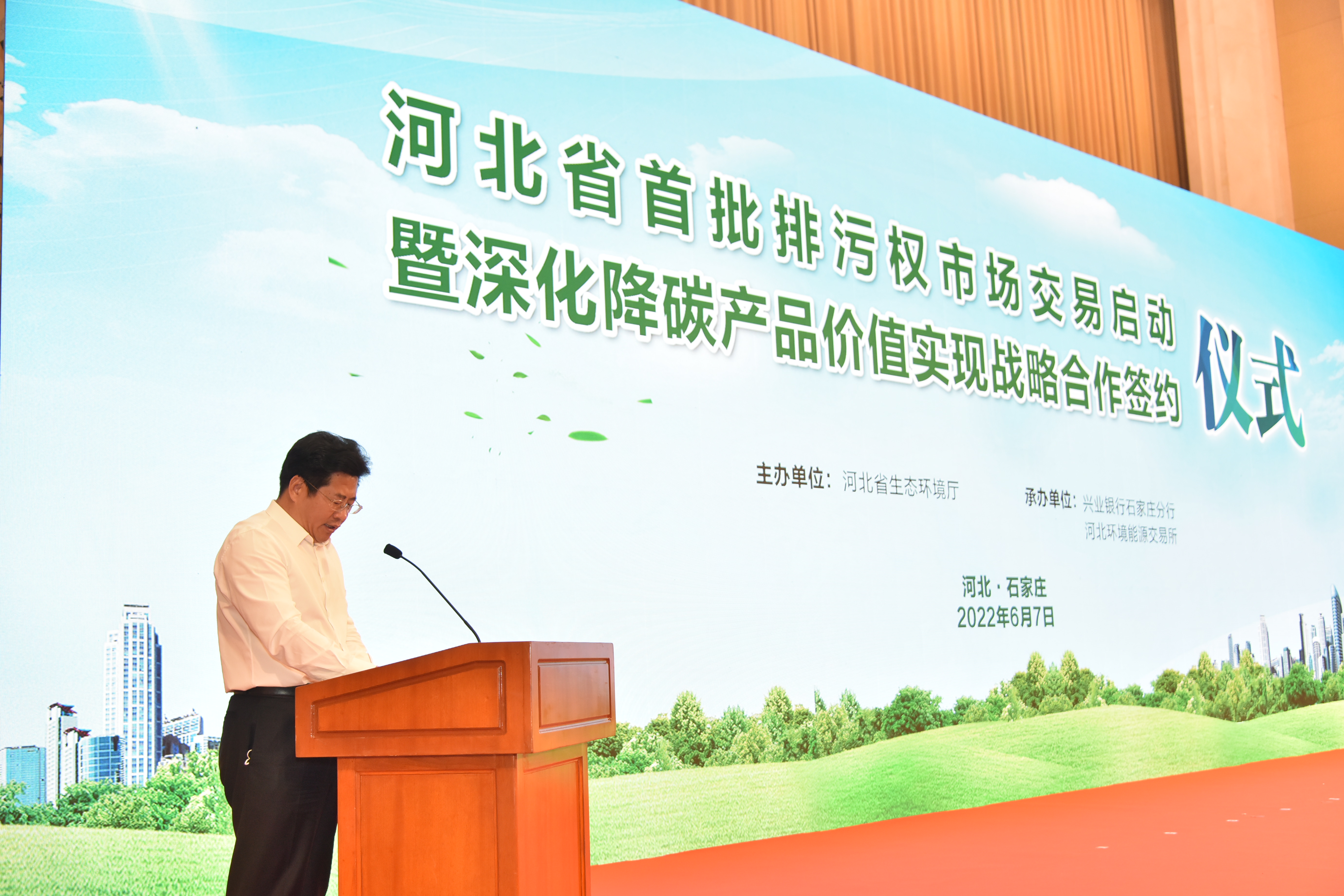 6月7日,河北省首批排污权市场交易启动暨深化降碳产品价值实现战略合作签约仪式成功举办。活动在石家庄市设主会场,各市(含定州市、辛集市)、雄安新区设分会场。省政府副省长胡启生在主会场出席活动并讲话,杏彩(中国)官方网站