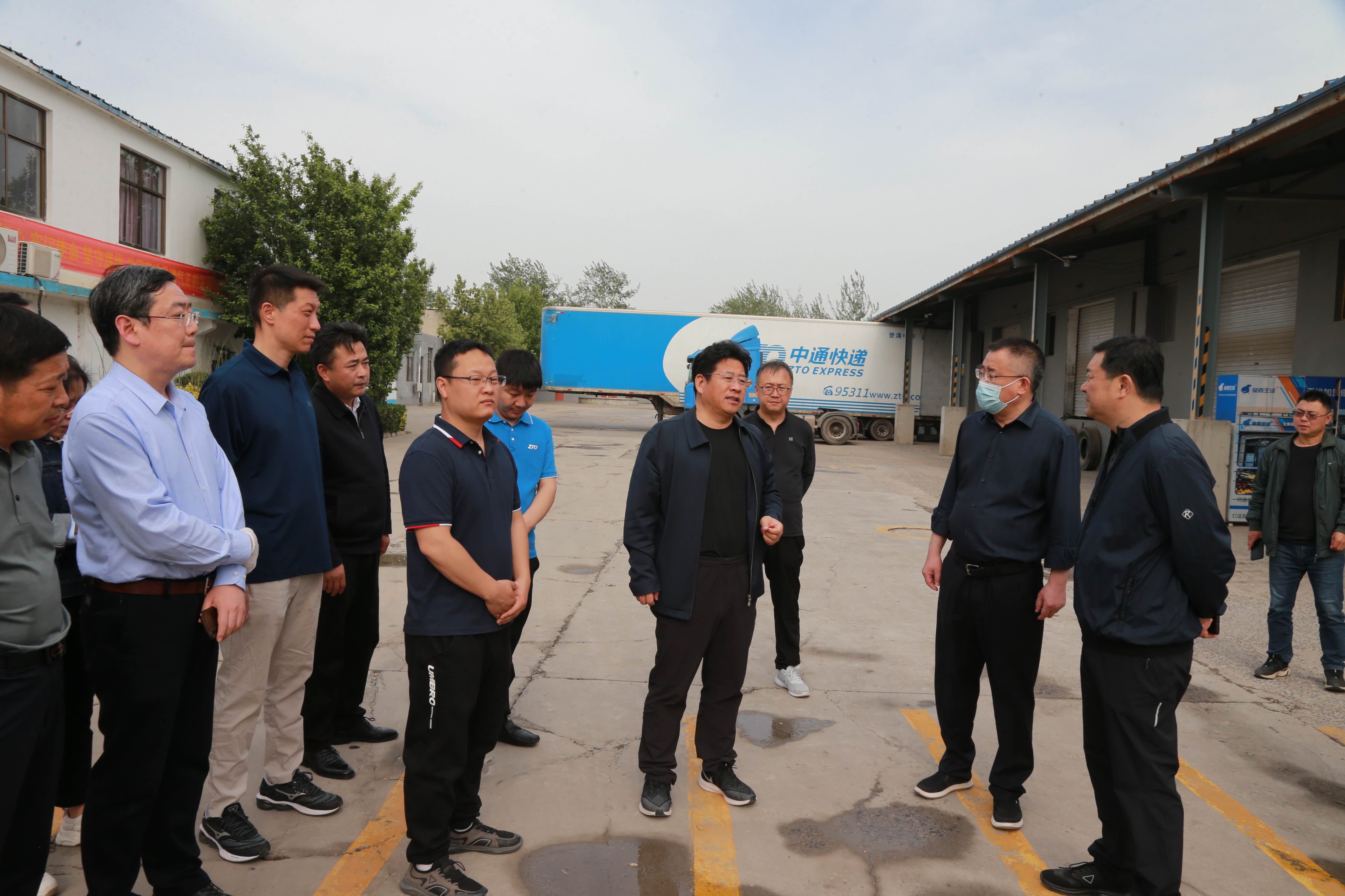 图为在中通快递河北中瑞物流有限公司调研快递运输车使用情况