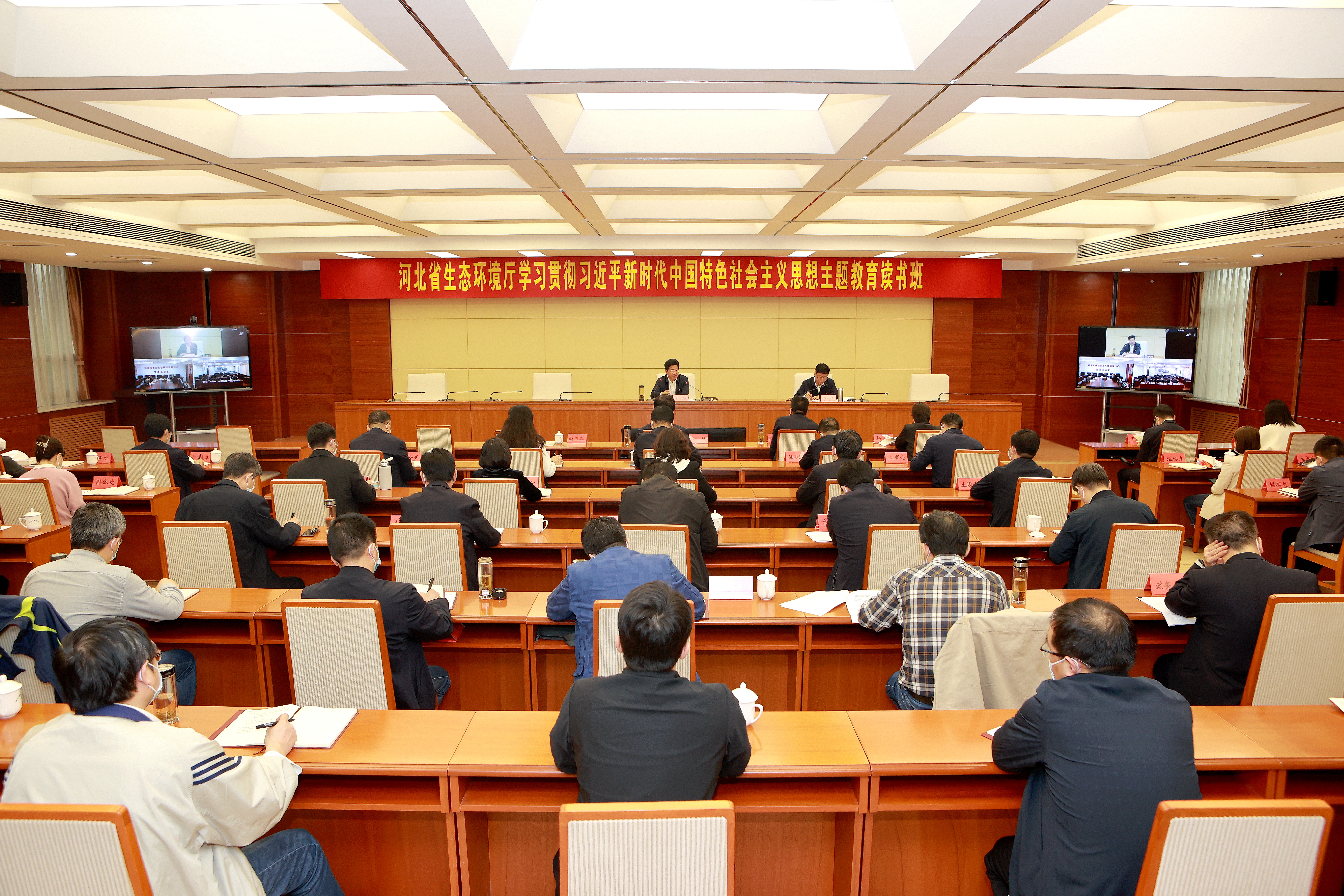 会议以视频形式召开。厅党组成员,各市局、厅机关各处室、各环境监察专员办公室、厅属各单位四级调研员及以上干部参加开班式。