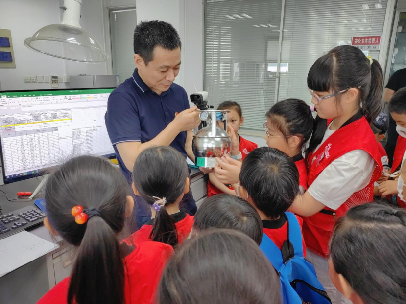 参观过程中,小记者们兴趣盎然,认真聆听讲解,积极参与互动,了解了气体样品的采集、分析过程以及走航车主要的监测对象、工作原理等,完成了一次生动有趣的生态环保探索之旅。