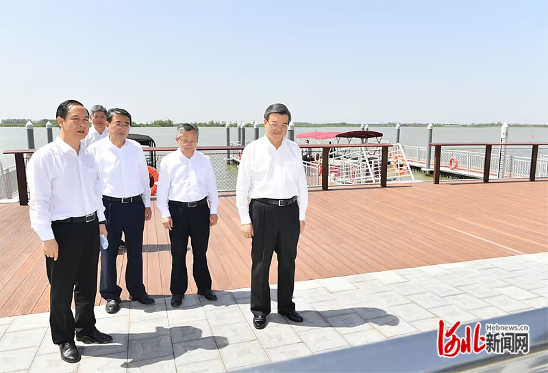 7月5日,省委书记、省人大常委会主任倪岳峰在雄安新区白洋淀留通码头调研。 河北日报记者赵海江摄