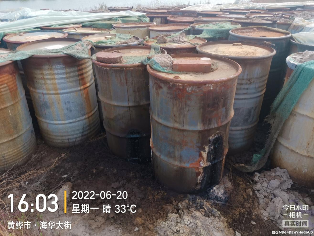 2022年6月14日,沧州市生态环境局南皮县分局接到南皮县公安局电话通知,称掌握一个非法处置危险废物线索,南皮县公安局联合沧州市生态环境局南皮县分局赴现场进行调查。联合检查时,南皮县姜强劈桶加工点未生产,现场有铁桶140个,塑料桶280个;成品铁皮三捆,共360张,经称重4362公斤,油劈完尚未压平铁桶皮72张;现场有加工机械劈桶机1台,压平机1台。现场有刺鼻性气味,地面有大量油污,部分土壤受到污染。河北中旭生态环境损害司法鉴定中心对现场地面油污及土壤进行采样监测,鉴定结果为HW08类危险废物,总重量约5吨。