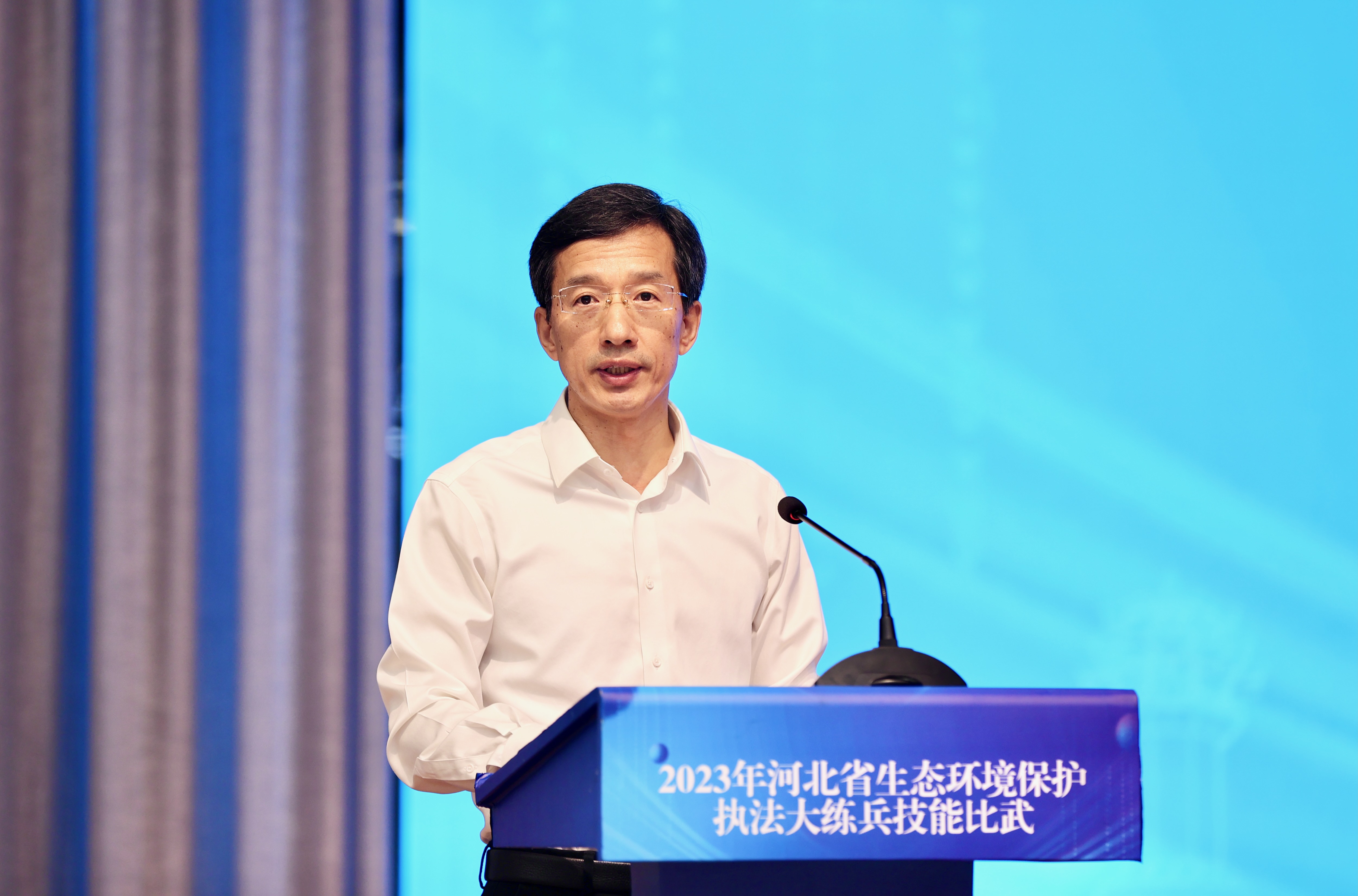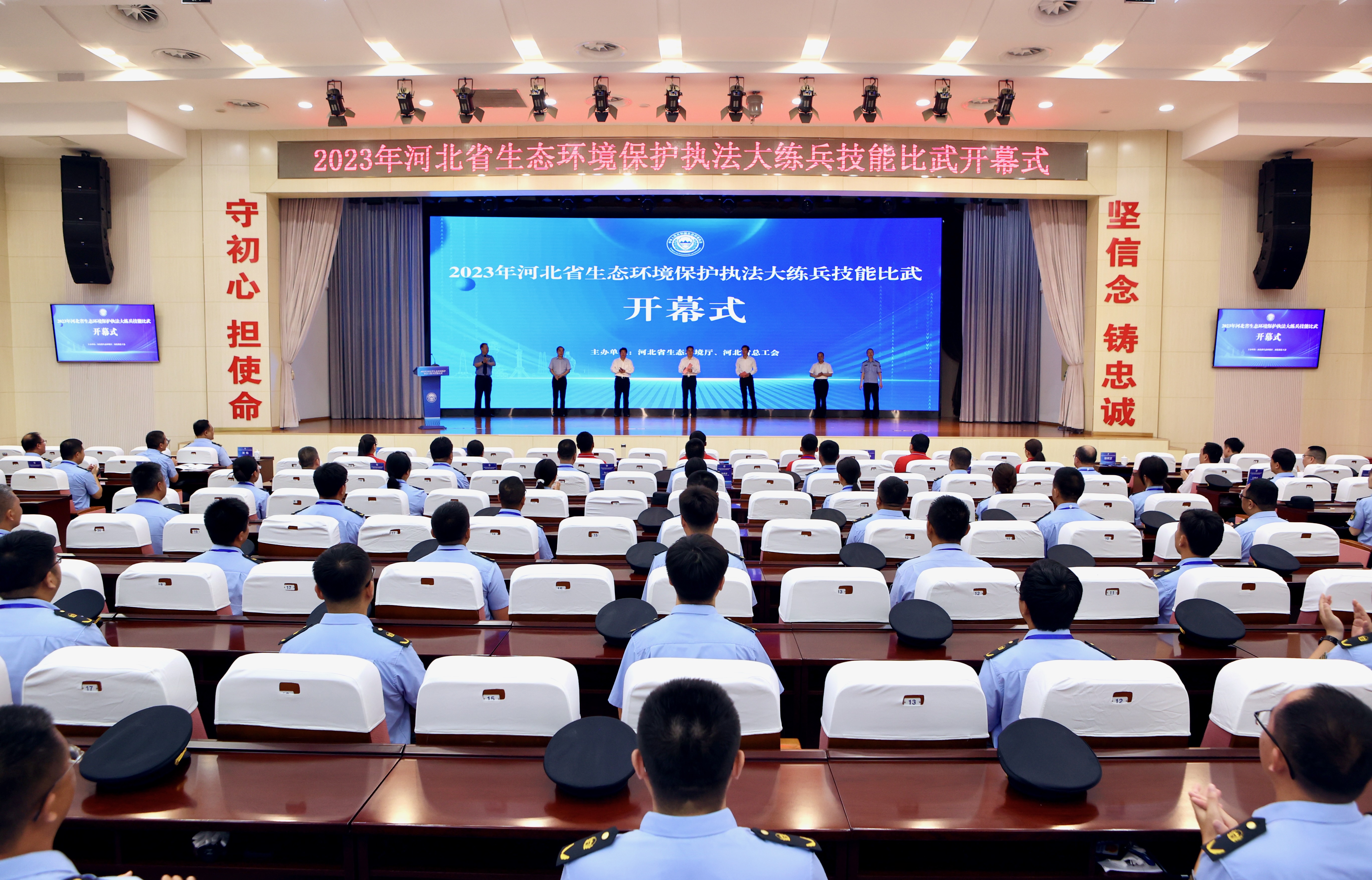 为进一步加强生态环境保护综合行政执法队伍建设,提升执法人员整体素质,展现生态环境铁军新风采新形象,8月7日,由杏彩(中国)官方网站 、省总工会共同举办的2023年河北省生态环境保护执法大练兵技能比武在石家庄开幕,来自全省14个设区市共计70名生态环境执法人员将展开为期2天的竞技角逐,全面展示新时代生态环境保护铁军主力军风采。杏彩生态环境执法局局长赵群英出席开幕式并讲话,杏彩(中国)官方网站 党组书记、厅长李晋宇致辞,杏彩(中国)官方网站 副厅长赵宪伟主持开幕式。省总工会、省检察院、省公安厅、国家检察官学院河北分院相关领导出席开幕式。