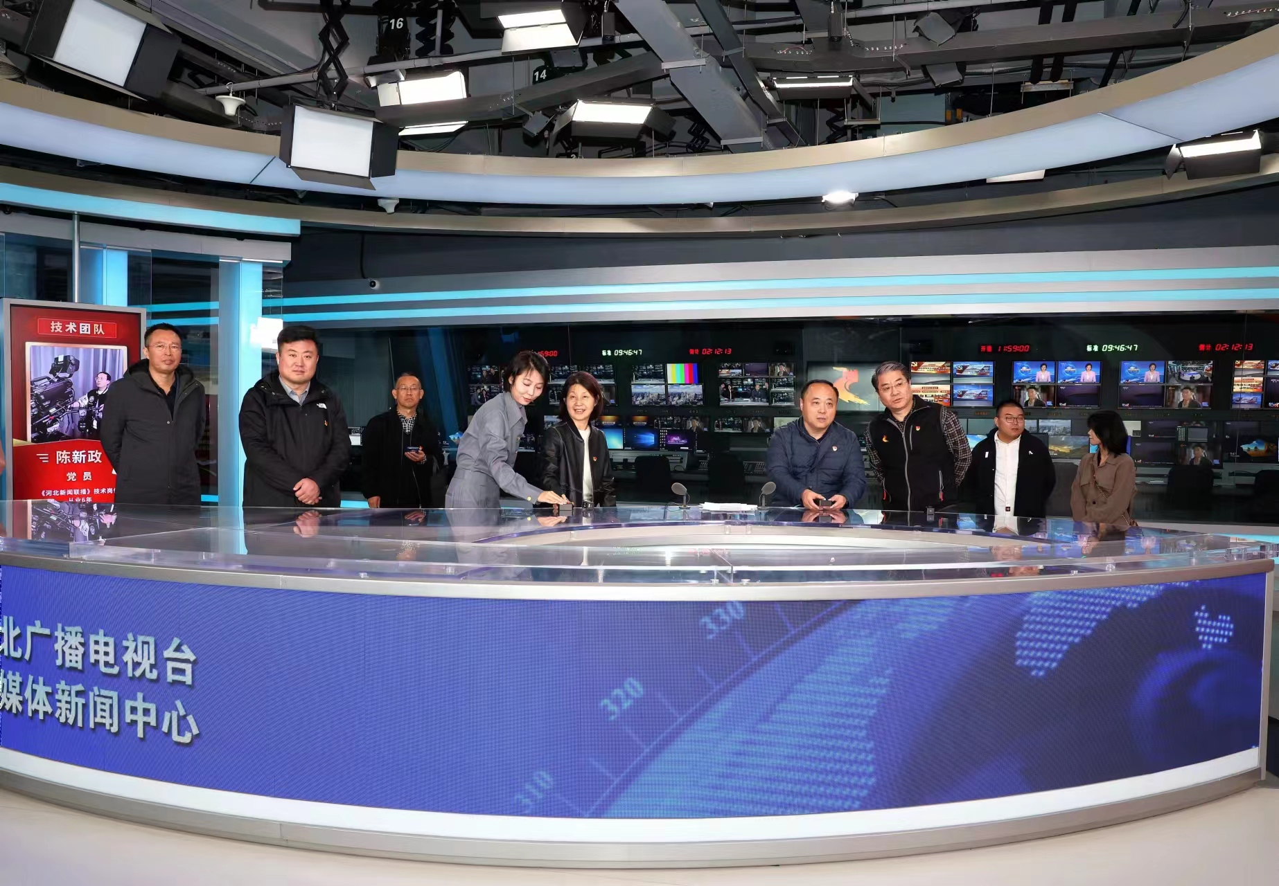 辐射中心一行党总支观摩了河北广播电视台(集团)融媒体中心的新闻播报中心、新闻编辑室、党建墙、总控室等党建亮点场所,对河北广播电视台融媒体中心党总支在高质量高标准开展支部党建、精准有力做好舆论引导等方面取得突出成就表示钦佩。