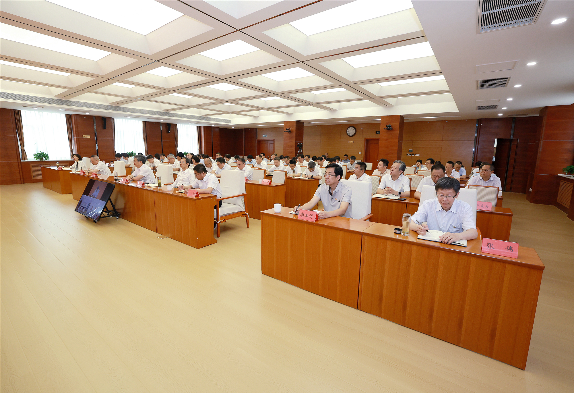厅级领导干部,厅机关各处室、各环境监察专员办公室、厅属各单位全体党员干部参加了会议。