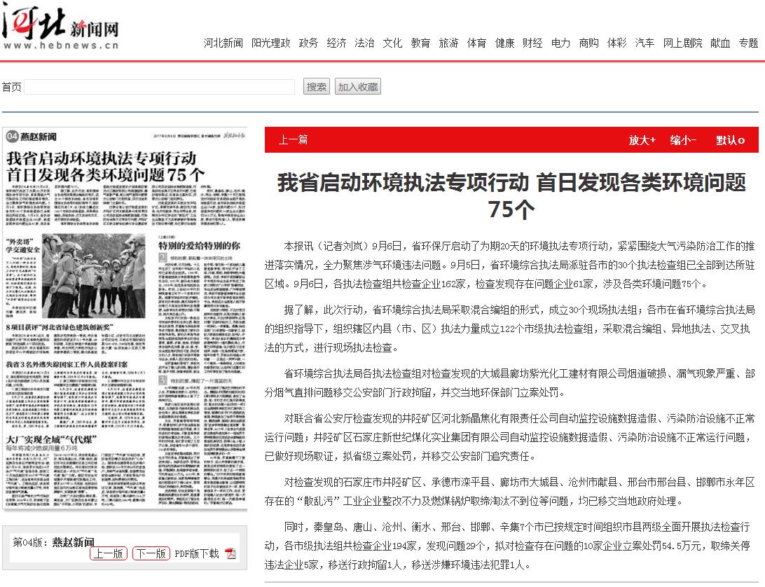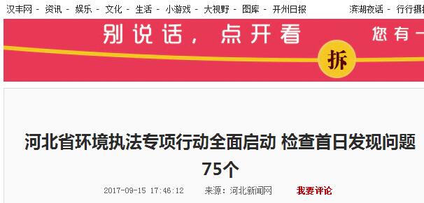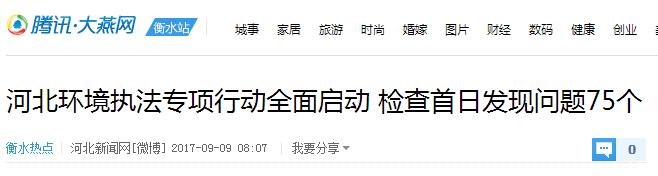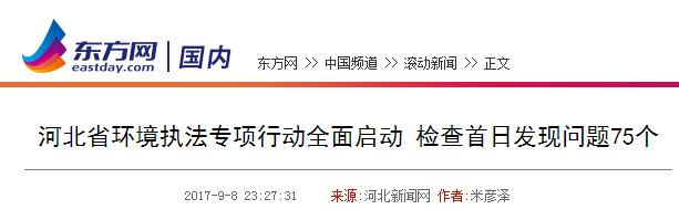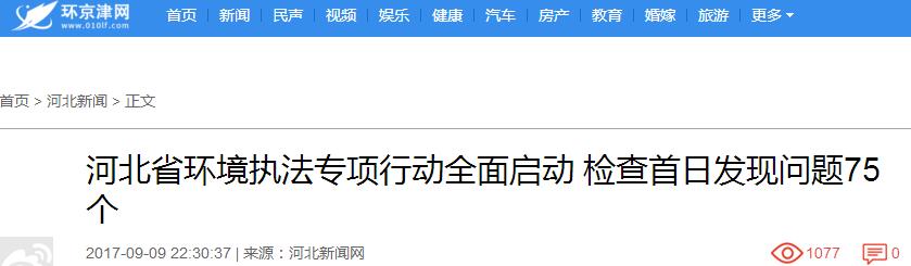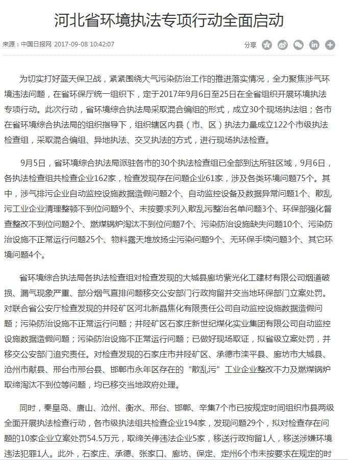 “河北省环境执法专项行动全面启动”媒体报道 来源:省生态环境宣传教育中心 时间:2017-09-25