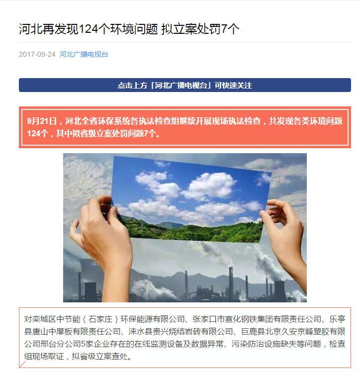 河北广播电视台:河北再发现124个环境问题 拟立案处罚7个