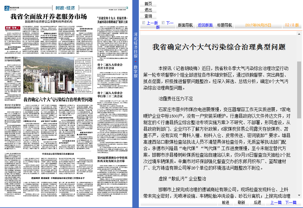 河北经济日报:我省确定六个大气污染综合治理典型问题