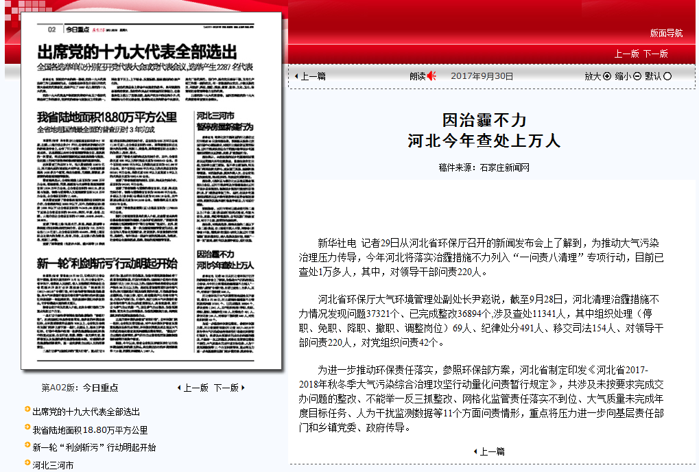 石家庄日报:因治霾不力 河北今年查处上万人