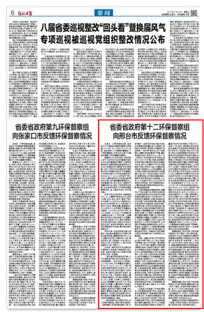 河北日报:省委省政府第十二环保督察组向邢台市反馈环保督察情况