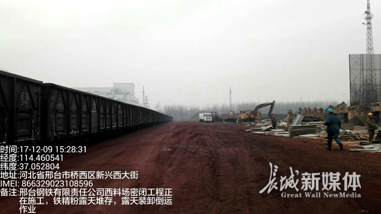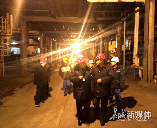 邢台执法组对邢钢进行现场检查。省环保厅供图
