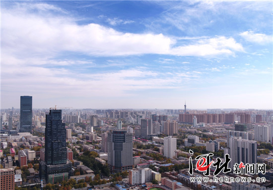 11月10日,石家庄市主城区在蓝天白云的映衬下显得分外美丽。(资料片) 记者田明 赵海江摄