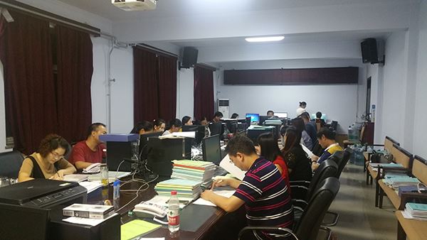河北永年环保局内灯火通明,环保局工作人员正在加班加点审批环评。永年环保局供图。