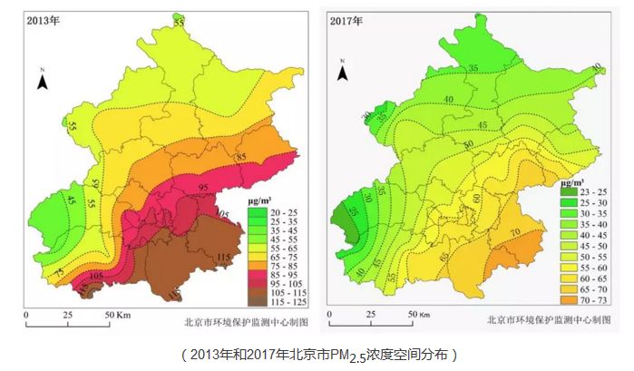 监测统计数据显示,2017年,北京细颗粒物(PM2.5)年均浓度为58微克/立方米,比上年同期下降20.5%,较2013年的90微克/立方米下降32微克/立方米,降幅达到35.5%,完成国家“大气十条”下达的60微克/立方米左右的目标。