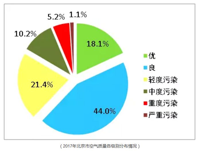 北京市环保局介绍,2017年气象条件整体有利,北风频率较高,尤其第四季度,发生空气重污染过程仅4次,造成重污染日5天,明显低于前两年水平。持续的大气污染减排措施加上有利的大气扩散条件,成就了2017年北京市空气质量显著改善。