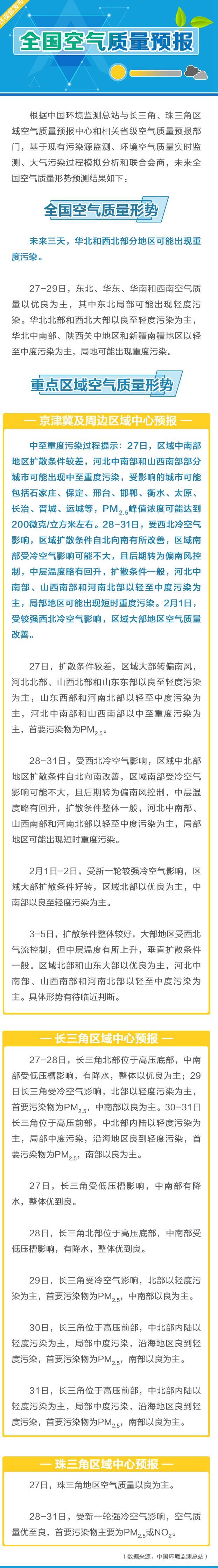 中新网1月26日电 据环境保护部宣传教育司官方微博消息,未来三天(1月27-29日),华北和西北部分地区可能出现重度污染。