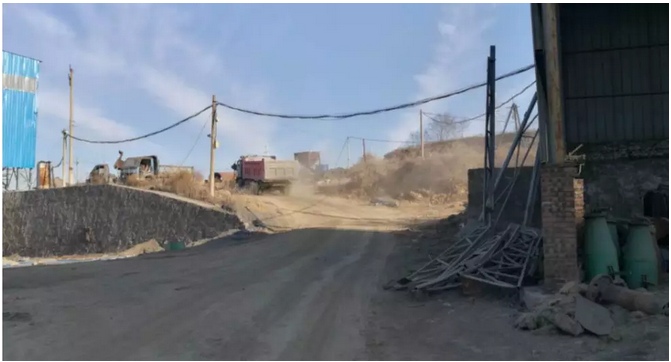厂区部分道路未硬化,物料运输车辆未覆盖,道路扬尘严重