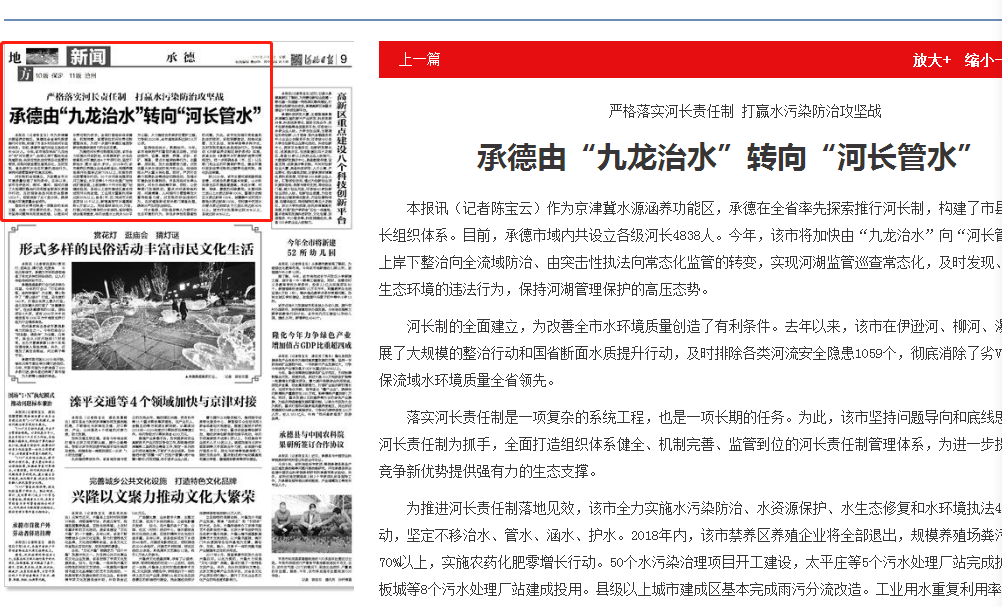 河北日报:严格落实河长责任制 打赢水污染防治攻坚战