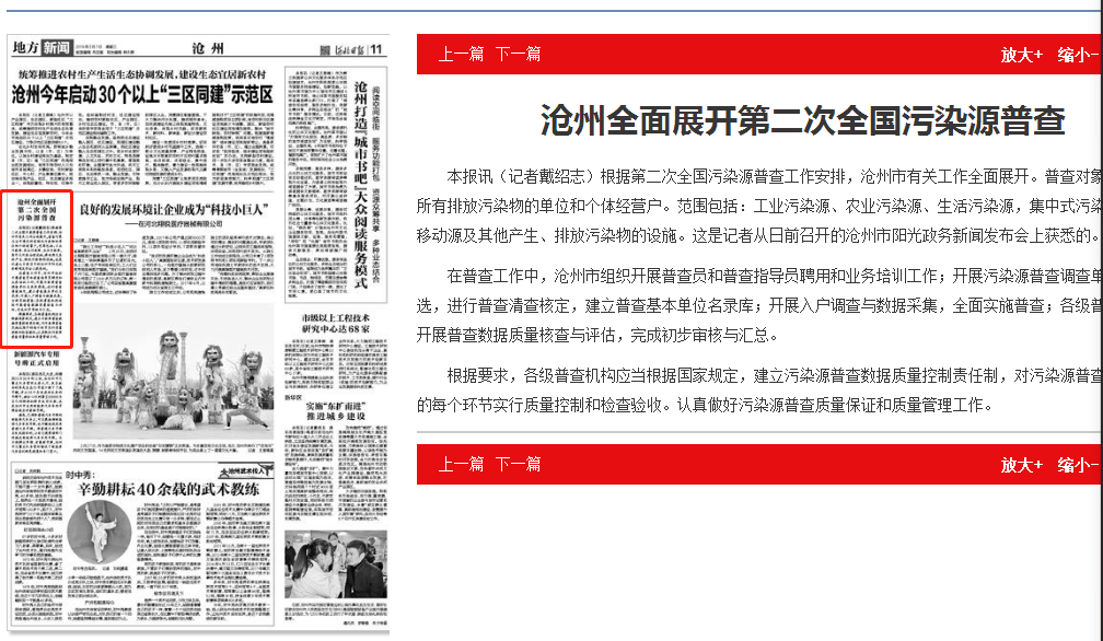在普查工作中,沧州市组织开展普查员和普查指导员聘用和业务培训工作;开展污染源普查调查单位名录库筛选,进行普查清查核定,建立普查基本单位名录库;开展入户调查与数据采集,全面实施普查;各级普查机构逐级开展普查数据质量核查与评估,完成初步审核与汇总。