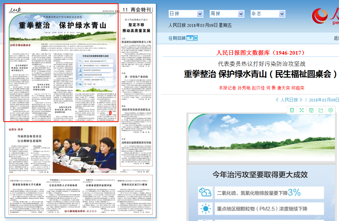王金南代表:污染防治攻坚战要像脱贫攻坚战一样,实施清单式、网格化的治理,确保责任落实。