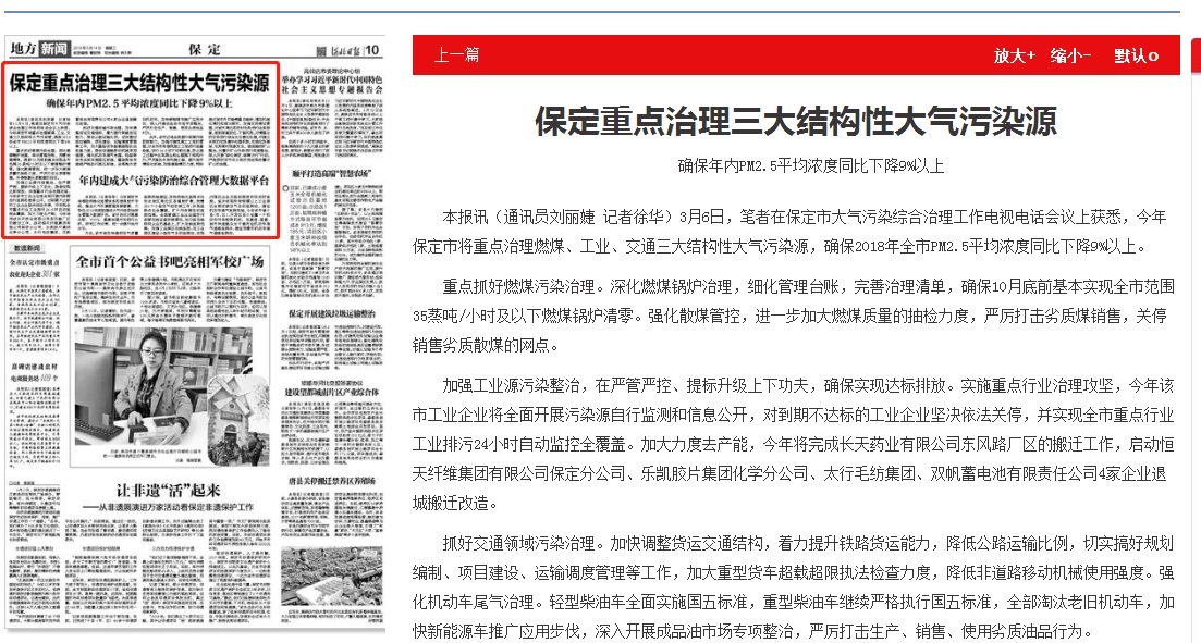 河北日报:保定重点治理三大结构性大气污染源