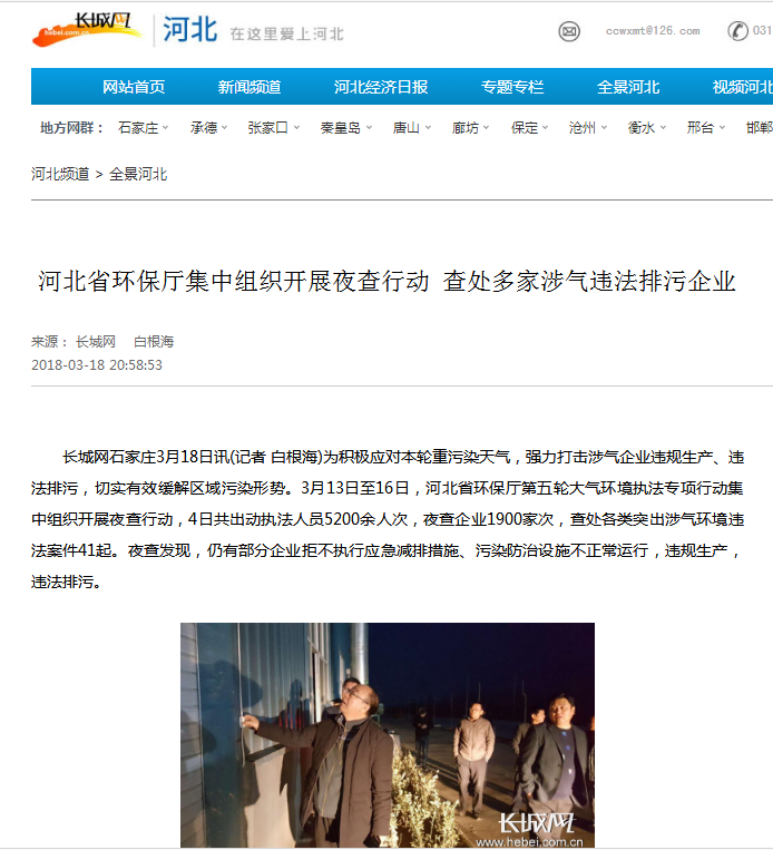 长城网:河北省环保厅集中组织开展夜查行动 查处多家涉气违法排污企业