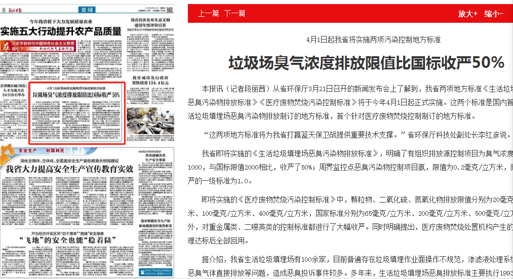 河北日报:垃圾场臭气浓度排放限值比国标收严50%