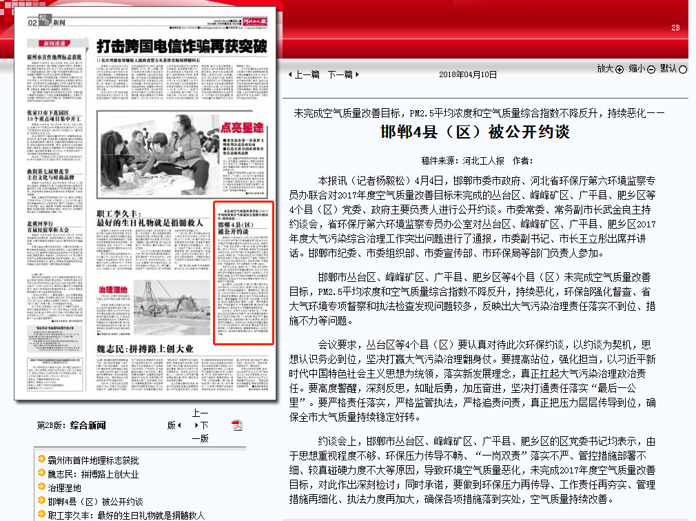 河北工人报:邯郸4县(区)被公开约谈