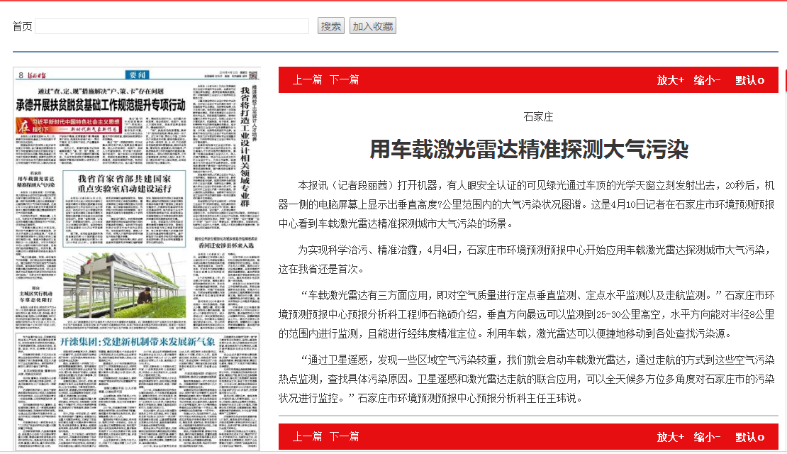 “通过卫星遥感,发现一些区域空气污染较重,我们就会启动车载激光雷达,通过走航的方式到这些空气污染热点监测,查找具体污染原因。卫星遥感和激光雷达走航的联合应用,可以全天候多方位多角度对石家庄市的污染状况进行监控。”石家庄市环境预测预报中心预报分析科主任王玮说。