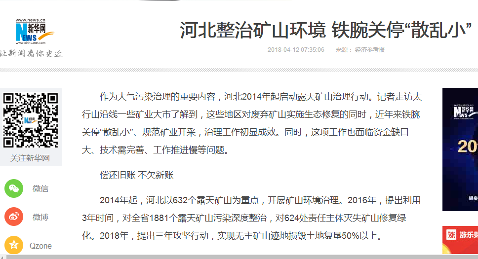 经济参考报:河北整治矿山环境 铁腕关停“散乱小”