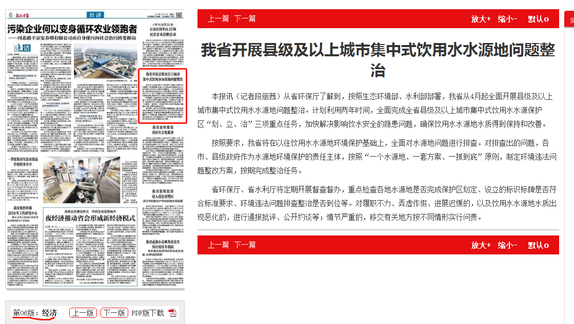 河北日报:我省开展县级及以上城市集中式饮用水水源地问题整治
