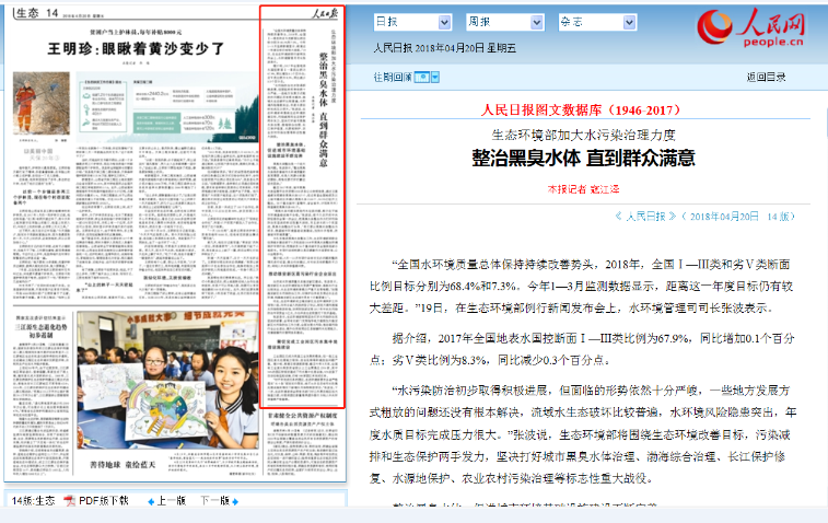人民日报:整治黑臭水体 直到群众满意