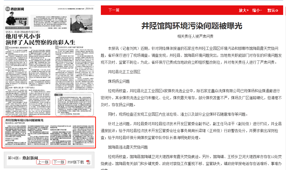 燕赵都市报:井陉馆陶环境污染问题被曝光