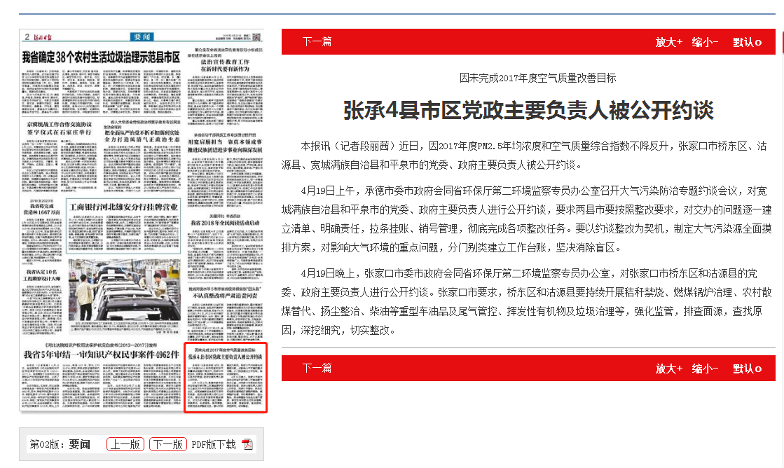 河北日报:张承4县市区党政主要负责人被公开约谈