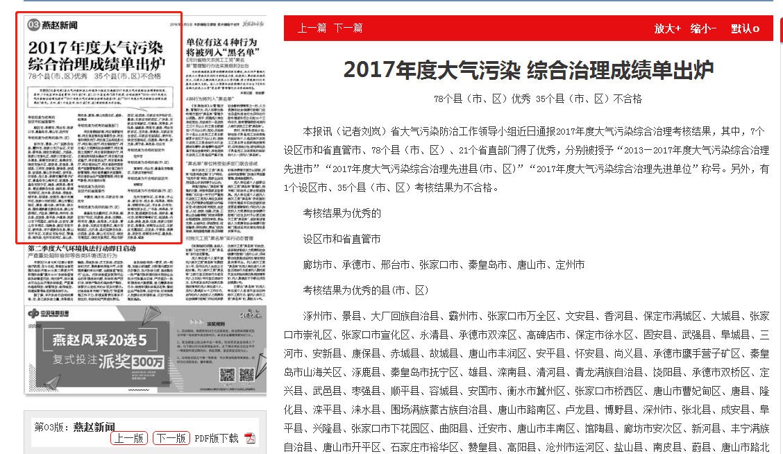 燕赵都市报:2017年度大气污染 综合治理成绩单出炉