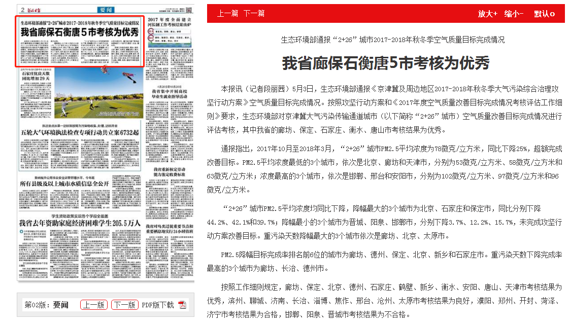 本报讯(记者段丽茜)5月3日,杏彩通报《京津冀及周边地区2017-2018年秋冬季大气污染综合治理攻坚行动方案》空气质量目标完成情况。按照攻坚行动方案和《2017年度空气质量改善目标完成情况考核评估工作细则》要求,杏彩对京津冀大气污染传输通道城市(以下简称“2+26”城市)空气质量改善目标完成情况进行评估考核,其中我省的廊坊、保定、石家庄、衡水、唐山市考核结果为优秀。