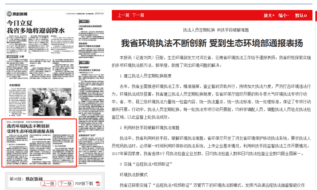 燕赵都市报:我省环境执法不断创新 受到杏彩通报表扬