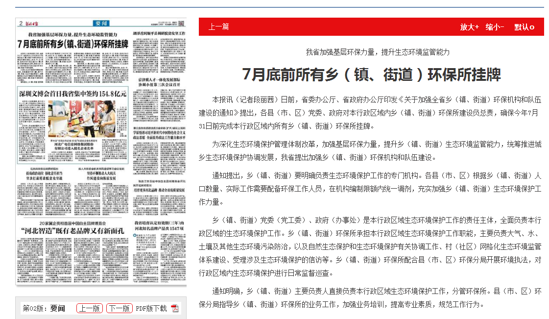河北日报:我省加强基层环保力量,提升生态环境监管能力