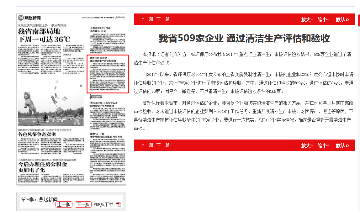 燕赵都市报:我省509家企业 通过清洁生产评估和验收