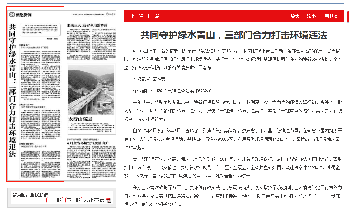燕赵都市报:共同守护绿水青山,三部门合力打击环境违法