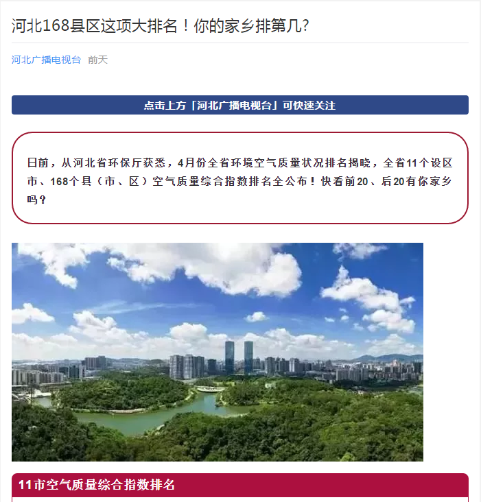 河北广播电视台新媒体:河北168县区这项大排名!你的家乡排第几?