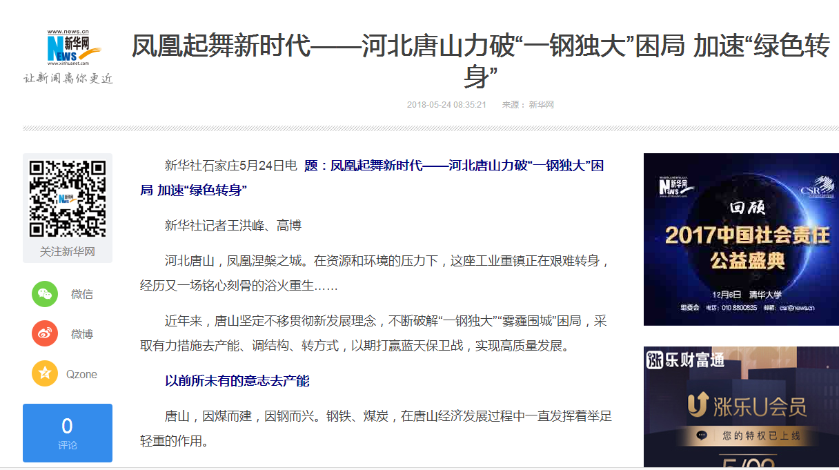 新华社:凤凰起舞新时代——河北唐山力破“一钢独大”困局 加速“绿色转身”